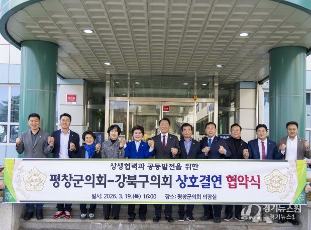 [경기뉴스원/경기뉴스1] | 강북구의회는 지난 3월 19일 평창군의회 의장실에서 양 의회 간 우호 증진 및 상호 협력 강화를 위한 상호결연 협약을 체결했다.