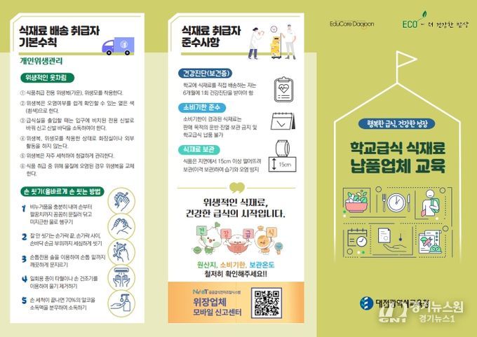 [경기뉴스원/경기뉴스1] | 대전시교육청은 안전하고 건강한 학교급식을 위해 학교급식 식재료 공급업체를 대상으로 교육 리플릿을 제작·배부했다고 밝혔다.