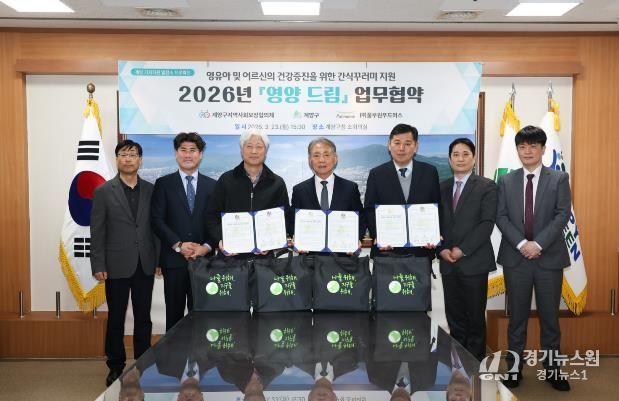 [경기뉴스원/경기뉴스1] | 인천광역시 계양구와 계양구지역사회보장협의체, ㈜풀무원푸드머스는 23일 저소득층 영유아와 돌봄이 필요한 노인가구의 건강한 식생활 지원을 위한 ‘영양드림’ 업무협약을 체결했다.