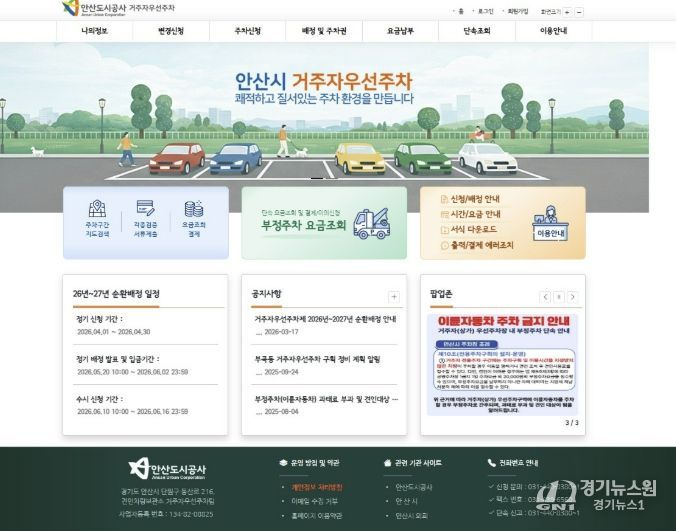 [경기뉴스원/경기뉴스1] | 안산도시공사는 거주자우선주차장 운영 서비스를 전면 개편하고, 내달 1일부터 한 달간 ‘2026년 순환배정’ 신청을 접수한다고 24일 밝혔다.
