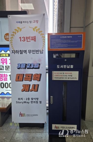 [경기뉴스원/경기뉴스1] | 고양특례시 도서관센터는 시민들의 도서 반납 편의를 높이기 위해 대곡역에 무인도서반납함을 설치했다고 24일 밝혔다.