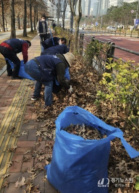 이번 환경정비는 2개 조로 나누어 법조로149번길(5블록 일대) 이면도로 및 보행로 청소, 광교호수공원길 잔여 낙엽 처리 등을 중심으로 진행됐다. 또한 잘못된 분리배출로 미수거된 폐기물을 재분리하고 무단투기 및 종량제 봉투 미사용 등 위법행위를 계도하는 활동도 진행했다.