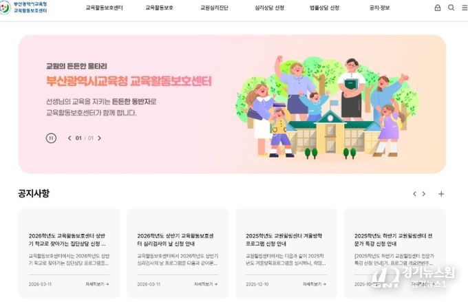 [경기뉴스원/경기뉴스1] | 부산광역시교육청 교육활동보호센터가 홈페이지를 새롭게 개설하고 교원들의 교육활동 보호 체계 강화에 나섰다.