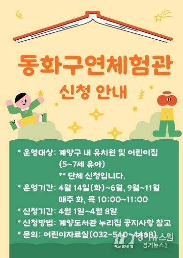 [경기뉴스원/경기뉴스1] | 인천광역시교육청계양도서관은 4월 1일부터 계양구 관내 어린이집과 유치원(5~7세)을 대상으로 ‘동화구연 체험관’에 참여할 기관을 모집한다.