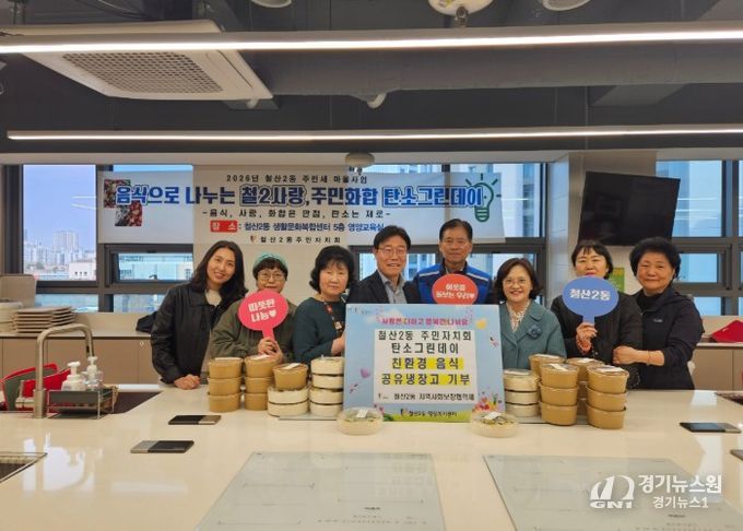 [경기뉴스원/경기뉴스1] | 광명시 철산2동 주민자치회는 지난 1일 지역 주민들과 함께 저탄소·친환경 식재료로 만든 음식을 ‘광명마을냉장고(연서로 10)’에 기부하며 탄소중립 실천에 앞장섰다.
