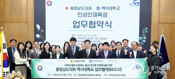 [경기뉴스원/경기뉴스1] | 충남도의회가 백석대학교와 손을 잡고 지역사회 미래를 책임질 ‘인성 인재’ 양성을 위한 제도적 기반 마련에 나선다.