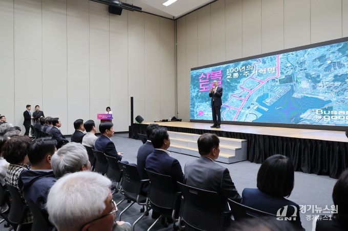 [경기뉴스원/경기뉴스1] | 부산시는 2일 오후 1시 50분 부산항국제전시컨벤션센터에서 '산복도로, 100년의 교통·주거혁명 프로젝트' 정책 브리핑을 개최하여, 산복도로 일대 교통과 주거환경을 개선하고 원도심 재도약을 위한 미래 비전을 발표했다.