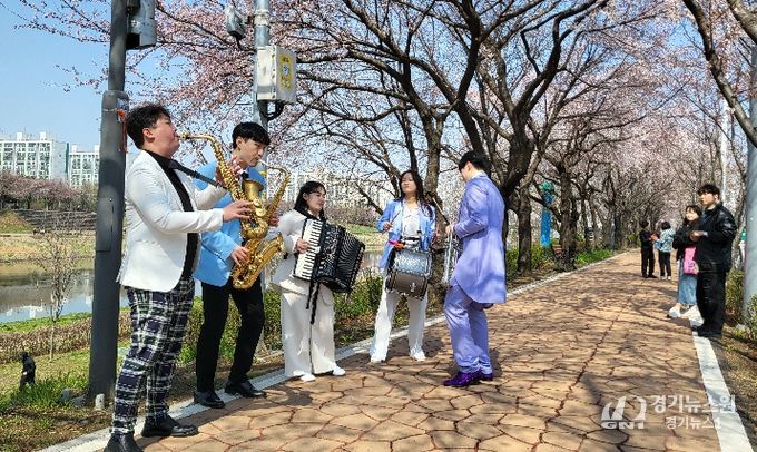 우선 안양천과 도심 광장에서 ‘봄따라 꽃따라 버스킹’ 공연이 펼쳐진다. 4일 오후 3시 안양천 벚꽃길에서 어쿠스틱 듀오밴드 ‘닮은’의 공연이 열리고, 18일에는 가산 현대아울렛 광장에서 밴드 ‘스미어’의 공연이 개최된다.