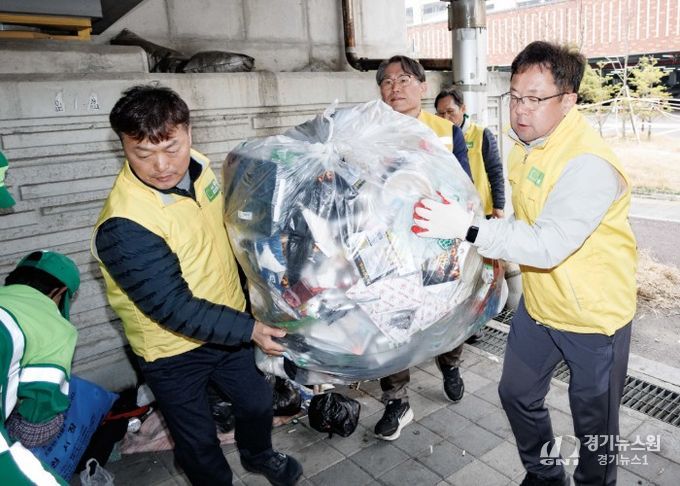 김현수 제1부시장을 비롯한 수원시 공직자, 유관기관 관계자들이 합동으로 정비 활동을 했다.