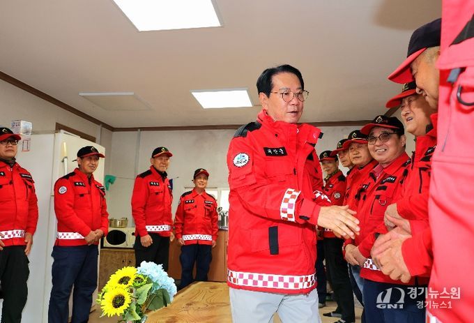 송 군수는 산림재난대응단의 근무 실태를 살피고 현장 요원들의 노고를 격려했다.