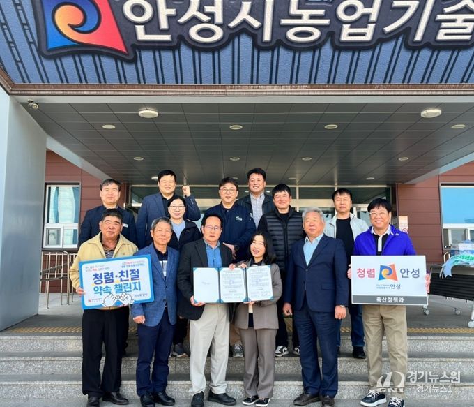 [경기뉴스원/경기뉴스1] | 안성시 농업기술센터 축산정책과가 지역 축산단체들과 손잡고 투명하고 공정한 행정 실현을 위한 '청렴 행보'에 본격적으로 나섰다. 시는 지난 4월 2일, 안성시 축산단체협의회와 함께 청렴 협약식을 개최하고 신뢰받는 축산행정 구현을 위한 협력 기반을 강화했다고 밝혔다.