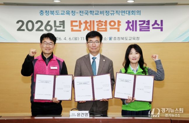 [경기뉴스원/경기뉴스1] | 충청북도교육청과 전국학교비정규직연대회의'전국공공운수노조 전국교육공무직본부, 전국학교비정규직노동조합'는 6일, 충북교육청 회의실에서 2026년 단체협약을 체결했다.