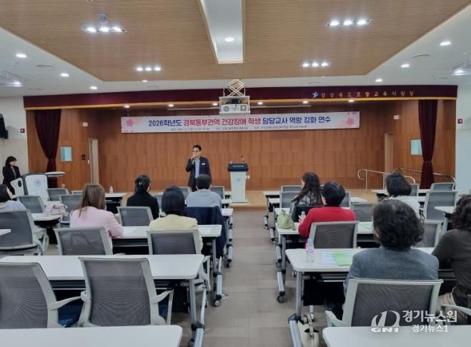 [경기뉴스원/경기뉴스1] | 포항교육지원청은 2026년 4월 3일 포항교육지원청 5층 대회의실에서 경북동부권역(포항,영덕,울진,청송,울릉) 건강장애학생 담당교사 30여명을 대상으로 2026학년도 경북동부권역 건강장애학생 담당교사 역량강화 연수를 실시했다.