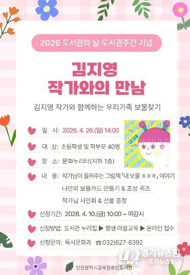 [경기뉴스원/경기뉴스1] | 인천광역시교육청중앙도서관은 오는 26일, 초등학교 저학년 어린이와 가족을 대상으로 김지영 그림책 작가와의 만남을 운영한다.