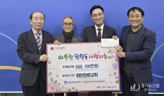 [경기뉴스원/경기뉴스1] | 수원시 영통구 원천동은 지난 10일 원천장로교회가 지역 내 저소득 주민들을 돕기 위해 성금 100만 원을 행정복지센터에 기탁했다고 밝혔다.