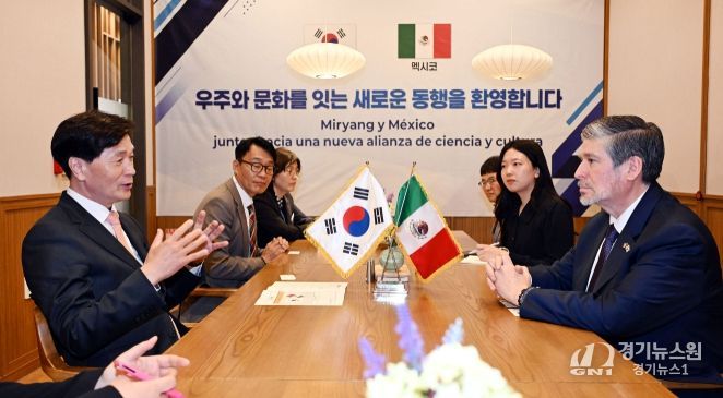 [경기뉴스원/경기뉴스1] | 경남 밀양시는 15일 카를로스 페냐피엘 소토(Carlos Peñafiel Soto) 주한 멕시코 대사가 밀양을 방문해 과학·문화 분야 상호 교류 방안을 논의했다고 밝혔다.