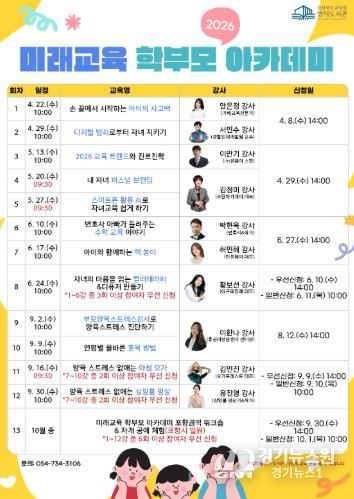 [경기뉴스원/경기뉴스1] | 경상북도교육청 영덕도서관은 학부모 및 예비 학부모, 일반인을 대상으로 '2026년 미래교육 학부모 아카데미' 강좌를 이달 22일부터 운영한다고 밝혔다.