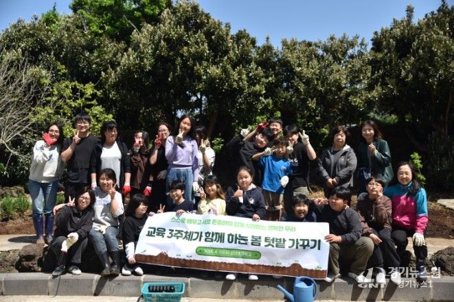 [경기뉴스원/경기뉴스1] | 제주도교육청 성산초등학교는 15일 학교 본관 뒤 텃밭에서 5~6학년 학생과 보호자, 교사가 함께하는 ‘텃밭 가꾸기’를 운영했다.