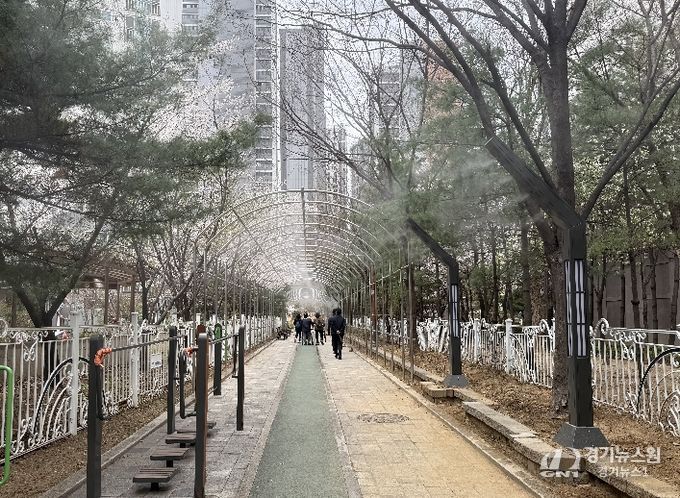 [경기뉴스원/경기뉴스1] | 인천 동구는 송림동 339-7번지 일원 궁현어린이공원 사잇길 쉼터 내 쿨링포그 설치를 완료했다고 밝혔다.