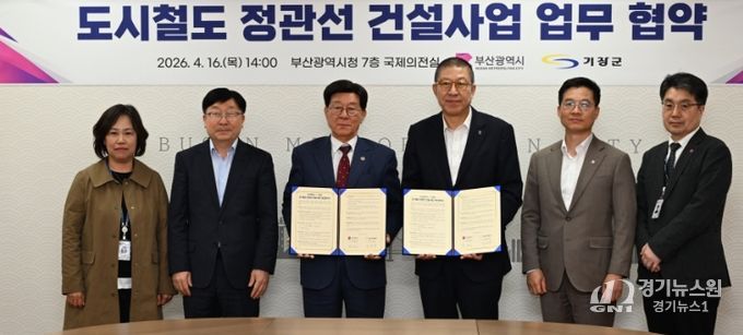 [경기뉴스원/경기뉴스1] | 기장군은 4월 16일 오후 2시, 부산시청 국제의전실에서 부산시와‘도시철도 정관선 건설사업 기본 협약’을 체결하고 정관선 조기 건설에 박차를 가한다고 밝혔다.
