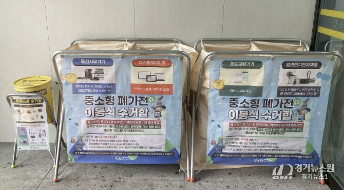 [경기뉴스원/경기뉴스1] | 수원시 영통구는 주민들의 소형폐가전 배출 편의를 높이고 자원순환을 활성화하기 위해 주민센터 내 소형폐가전 수거함을 설치하고, e-순환거버넌스와 연계한 수거사업을 추진한다고 밝혔다.