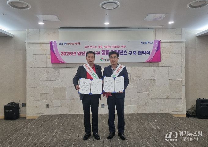 [경기뉴스원/경기뉴스1] | 양산시 시민통합위원회(위원장 박원현)와 양산시 소통담당관은 2026년 4월 16일, 양산시립박물관에서 민‧관 청렴거버넌스 공동 협약식을 체결했다. 이번 협약은 청렴한 행정문화 정착과 시민과의 신뢰 구축을 목표로 마련됐다.