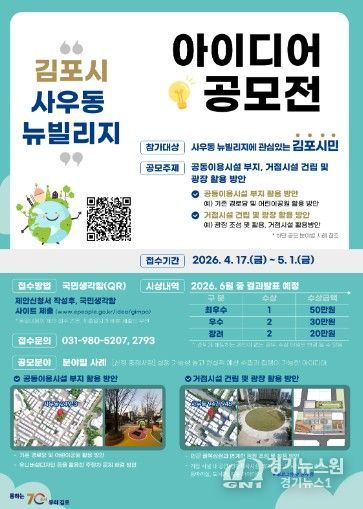 [경기뉴스원/경기뉴스1] | 김포시가 사우동 뉴빌리지 사업의 일환으로 원도심에 새로운 활력을 불어넣기 위해 ‘2026 사우동 뉴빌리지 시민 아이디어 공모전’을 개최한다고 밝혔다.
