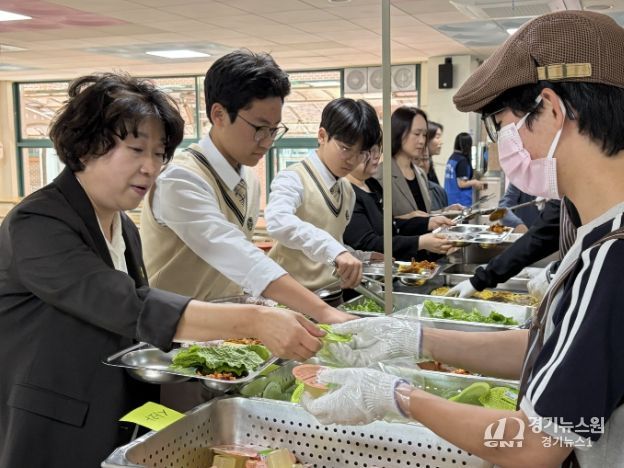 [경기뉴스원/경기뉴스1] | 고양교육지원청 이현숙 교육장은 4월 16일 자율선택급식 운영학교인 서정중학교를 방문해 교육공동체와 현장을 점검하고 소통하는 시간을 가졌다.