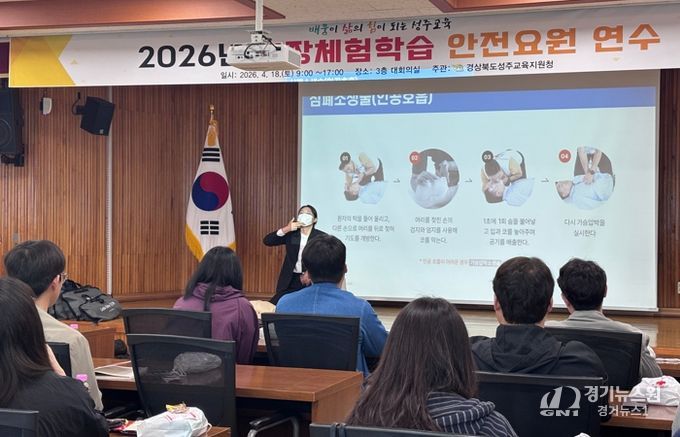 [경기뉴스원/경기뉴스1] | 성주교육지원청은 4월 18일 관내 초·중·고등학교 교사 30명을 대상으로 현장체험학습 운영의 안전 역량을 강화하기 위해 '2026년 현장체험학습 안전요원 연수'를 실시했다.