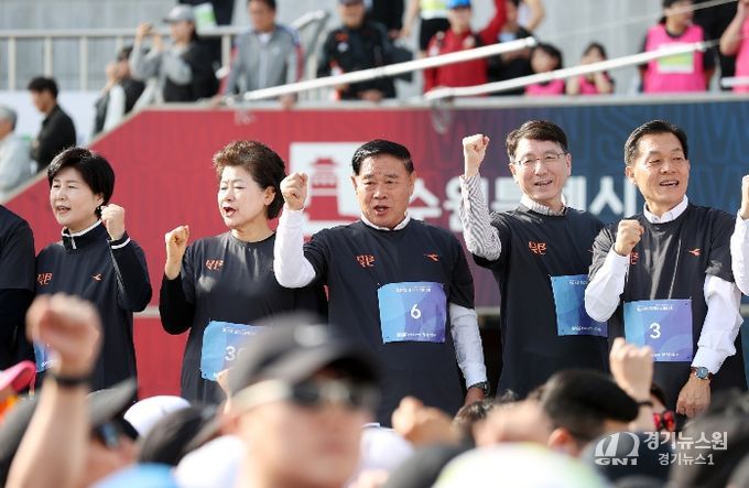 [경기뉴스원/경기뉴스1] | 수원특례시의회는 19일 수원종합운동장에서 열린 '제24회 경기마라톤 대회'에 참석해 시민들과 함께 건강과 화합의 가치를 나눴다.