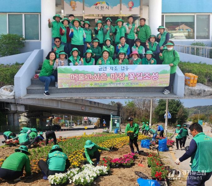 [경기뉴스원/경기뉴스1] | 마장면 새마을남·녀지도자협의회(회장 지윤정, 이희자)는 4월 18일) 새봄맞이 아름 다운 마을 가꾸기를 위하여 관내 도로변 및 쌈지공원 등에 계절 페츄니아, 메리골드, 마가렛 등의 봄꽃묘를 식재하며 마을 곳곳에 생기를 더했다. 또한, 덕평로, 오천로 등 주요 대로변을 중심으로 가로화분 및 화단에 꽃을 식재하여 화사한 봄의 시작을 알렸다.