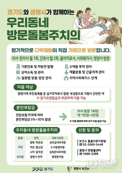 [경기뉴스원/경기뉴스1] | 장기요양등급이 없는 광명시민도 집에서 방문돌봄주치의 진료를 받을 수 있게 된다.