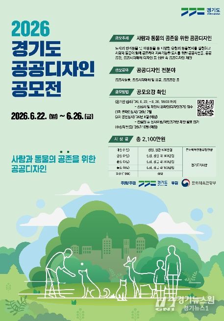 [경기뉴스원/경기뉴스1] | 경기도가 ‘사람과 동물의 공존을 위한 공공디자인’이란 주제로 제20회 ‘2026년 경기도 공공디자인 공모전’을 6월 22일부터 26일까지 개최한다.
