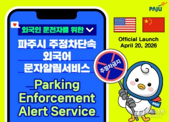 [경기뉴스원/경기뉴스1] | 파주시는 4월 20일부터 외국인 운전자를 대상으로 한 ‘주정차 단속 외국어 문자 알림 서비스’를 시행한다.