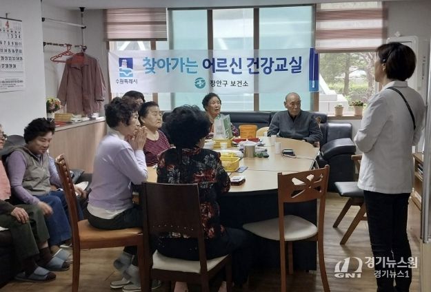 [경기뉴스원/경기뉴스1] | 수원시 장안구 송죽동은 지난 17일, 관내 로얄팰리스 경로당에서 '찾아가는 어르신 건강교실' 프로그램을 운영했다.