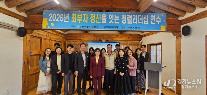 [경기뉴스원/경기뉴스1] | 경상북도경주교육지원청은 4월 16일 목요일 경주 최부자 아카데미에서에서 경주교육지원청 교육전문직원과 행정직원을 대상으로 ‘최부자댁 정신을 잇는 청렴 리더십 연수’를 운영했다.