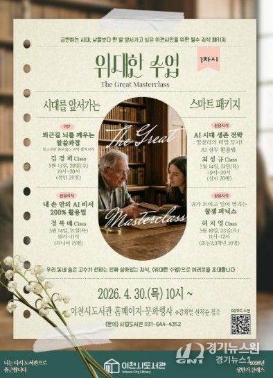 [경기뉴스원/경기뉴스1] | 이천시립도서관은 오는 4월 30일부터 2026년 상반기 시민강사 프로그램 ‘위대한 수업’의 1차 수강생을 모집한다고 밝혔다.