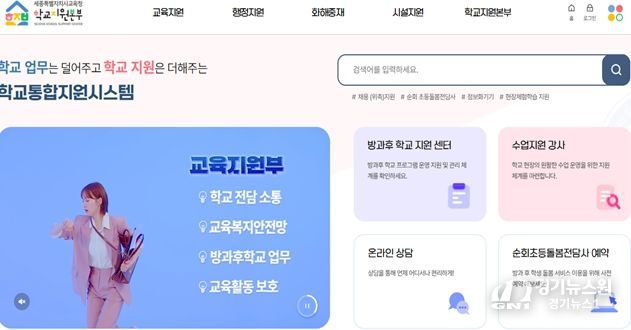 [경기뉴스원/경기뉴스1] | 세종특별자치시교육청학교지원본부(본부장 이미자)는 학교 현장의 행정업무를 온라인에서 한 번에 해결할 수 있는 ‘학교통합지원시스템’ 구축을 완료하고 22일부터 본격적인 운영에 들어간다.