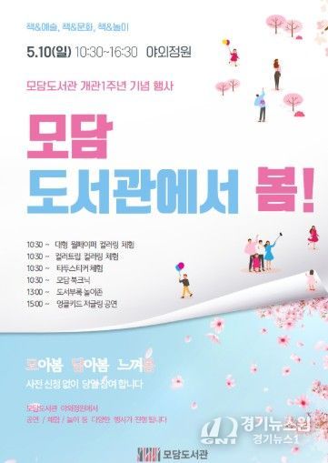 [경기뉴스원/경기뉴스1] | 김포 최대 규모 공공도서관인 모담도서관이 개관 1주년을 맞아 오는 5월 10일 ‘책과 문화·예술·놀이’가 어우러지는 행사를 연다. 이번 행사는 시민들에게 감사의 마음을 전하고 복합문화공간으로서의 역할을 수행하고자 마련된 것으로, 사전예약 없이 도서관 방문자 누구나 참여 가능하다.