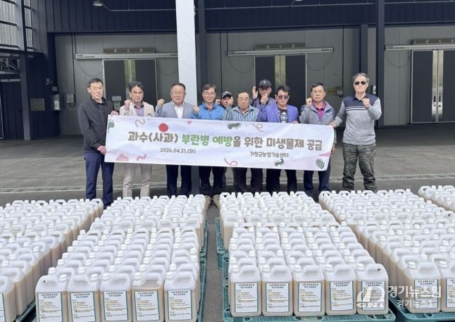 [경기뉴스원/경기뉴스1] | 가평군농업기술센터가 사과 재배 농가의 고질적인 질병인 부란병 예방을 위해 친환경 미생물제 보급에 나섰다.
