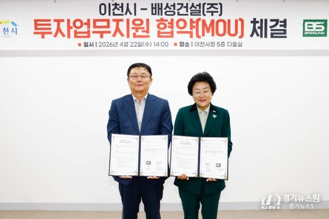[경기뉴스원/경기뉴스1] | 이천시가 22일 배성건설㈜와 203억 원 규모의 투자업무지원협약을 체결하고, 기업의 신규 공장 신설을 본격 지원한다.