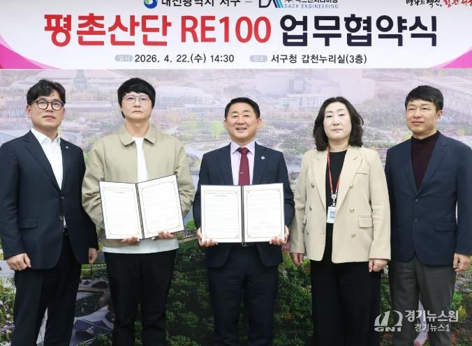 [경기뉴스원/경기뉴스1] | 대전 서구는 22일 구청 갑천누리실에서 평촌일반산업단지 입주기업인 ㈜닥스엔지니어링과 재생에너지 보급 확산을 위한 ‘RE100 업무협약’을 체결했다.
