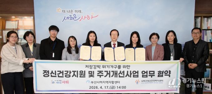 [경기뉴스원/경기뉴스1] | 부산 사하구는 지난 17일 사하구정신건강복지센터(센터장 최경아), 부산사하지역자활센터(센터장 이해중)와 ‘저장강박 위기가구 지원을 위한 업무협약’을 체결했다.