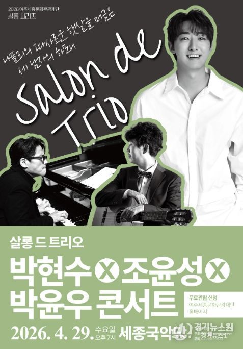 [경기뉴스원/경기뉴스1] | 여주세종문화관광재단이 오는 29일, 문화가 있는 날을 맞아 2026년 특별기획 살롱 시리즈의 세 번째 무대 '살롱 드 트리오 박현수X조윤성X박윤우 콘서트'를 세종국악당에서 개최한다.