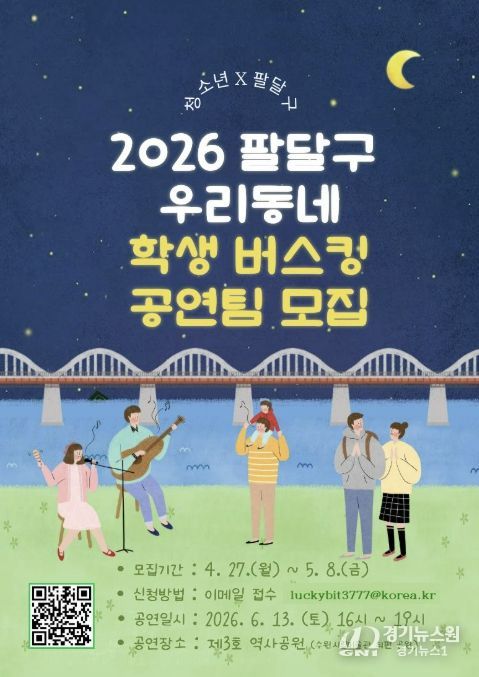 [경기뉴스원/경기뉴스1] | 수원시 팔달구가 청소년들이 직접 주인공이 되어 공연에 참여하고 즐기는 ‘2026 팔달구 우리동네 학생 버스킹’의 공연팀을 모집한다고 밝혔다.