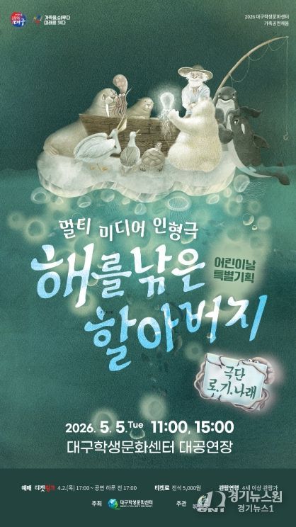 [경기뉴스원/경기뉴스1] | 대구학생문화센터는 어린이날을 맞아 어린이와 가족 관객을 위한 특별 기획공연 '멀티미디어 인형극 해를 낚은 할아버지'를 오는 5월 5일 대공연장에서 선보인다.