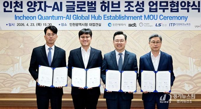[경기뉴스원/경기뉴스1] | 인천광역시는 ㈜에스디티(이하 ‘SDT’), 미국 Anyon Computing(이하 ‘Anyon’), LS증권, 인천테크노파크와 함께 ‘양자-AI 글로벌 허브 조성’을 위한 업무협약(MOU)을 체결했다고 밝혔다.