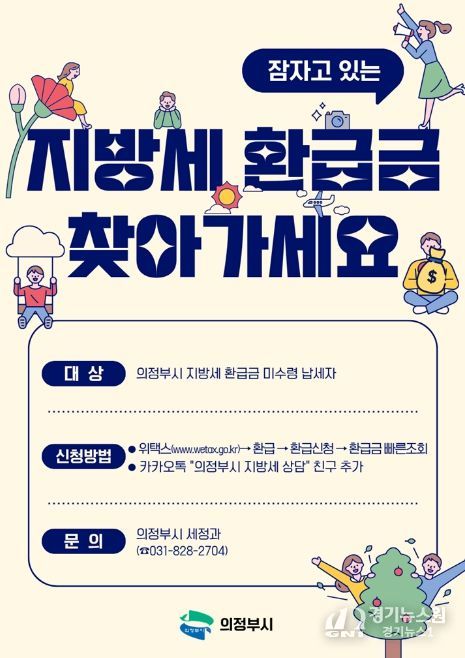 [경기뉴스원/경기뉴스1] | 의정부시는 납세자가 아직 찾아가지 않은 지방세 환급금을 돌려주기 위해 5월 말까지 ‘지방세 환급금 일제정리 기간’을 운영한다.