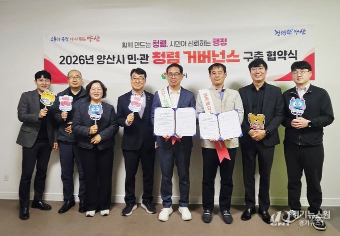 [경기뉴스원/경기뉴스1] | 양산시 미래혁신국(국장 장병조)은 투명하고 공정한 행정 실현을 위해 관내 주요 유관기관과 ‘민·관 청렴 거버넌스 협약’을 체결했다고 밝혔다.