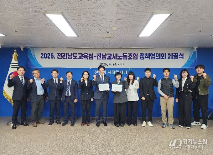 [경기뉴스원/경기뉴스1] | 전라남도교육청과 전남교사노동조합(위원장 김신안)은 24일 전라남도교육청 중회의실에서 ‘2026년도 정책협의회 체결식’을 갖고, 건강한 교육 생태계 조성을 위한 공동의 노력을 약속했다.